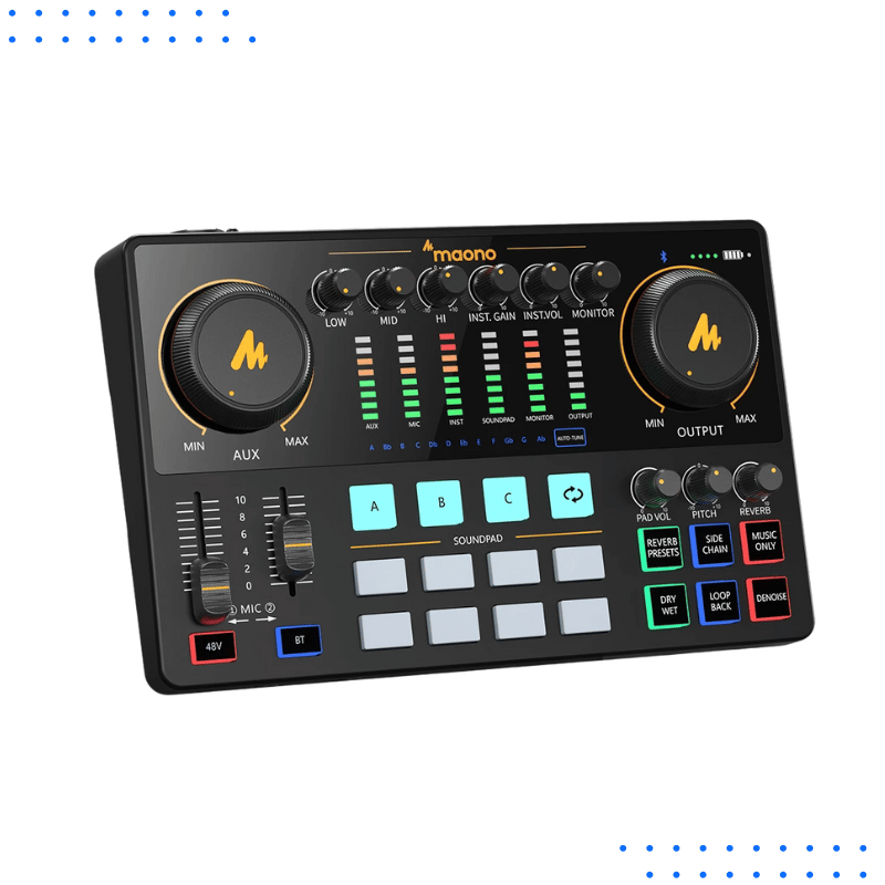 The Maono AME2 DJ Mixer is perfect for creators on the go — blending portability with pro-level audio features. Whether you’re recording vocals, interviewing guests, or livestreaming music, this sound card does it all with ease.